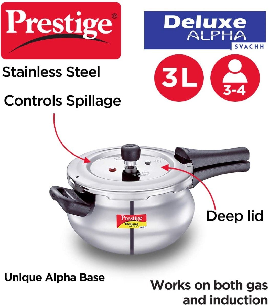 "PRESTIGE" DELUXE ALPHA SVACHH STAINLESS STEEL PRESSURE COOKER HANDI 3L